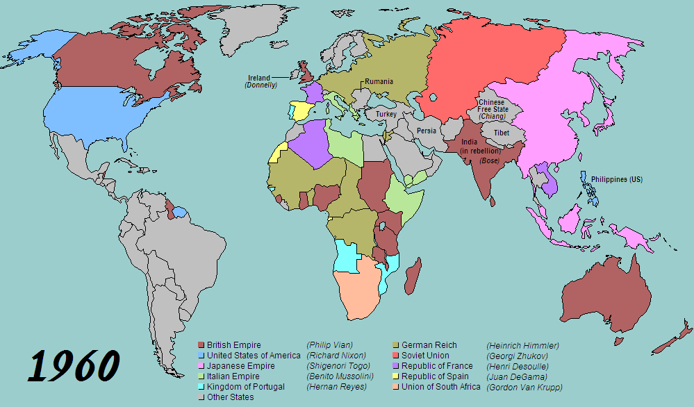 A map showing an alternate outcome of World War 2, from the